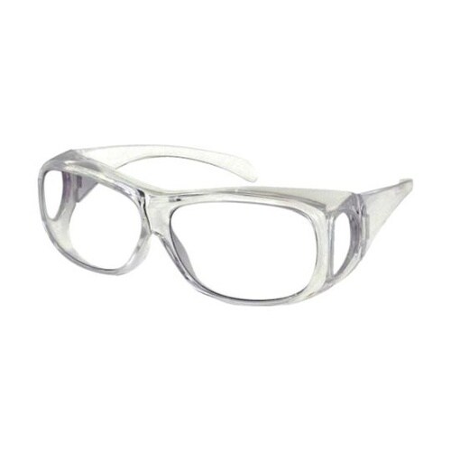 今お使いの眼鏡の上から掛けることができ、作業時に両手が使えて便利です。大きいフレームを使用しているのでフィット感も抜群です。両サイドに小窓がついており、視野が広々で見えやすいです。 |
