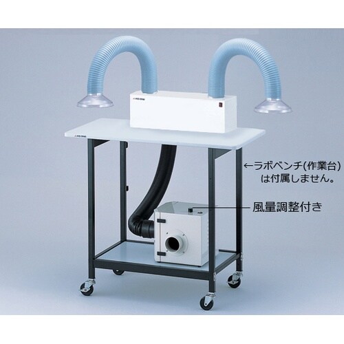 自由自在に形状を変えられるフレキシブルダクトを利用した局所排気用ダクトファンユニットです。オプションの活性炭ユニットを併用すればガスの吸着も可能です。 |