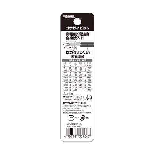 TORXネジ専用のビット。トルクスライセンスにもとづき製造しているので、あらゆるトルクスネジに対応。台紙サイズ:135×35×8mm。 |