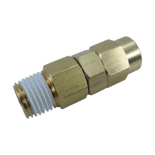 袋ナットによる締め込み式ですのでホースバンド等による締め付けより確実です。ホース内空気流量を最大限活用できる構造です。シール加工(Rねじ部)。 |