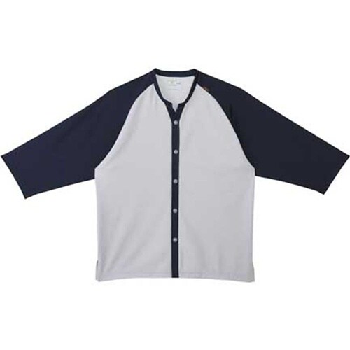 前開きシャツ ネイビー×シルバーモク L