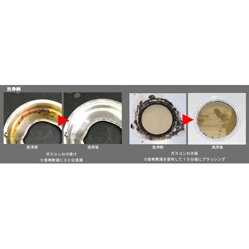 用途:動植物性油汚れの洗浄特長:▼1.業務用ならではの優れた洗浄力!▼2.アルミや亜鉛メッキを腐食しません!▼3.コンロやレンジフードの印字に影響を与えません。 |