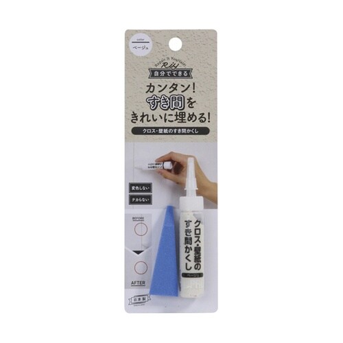 クロスや壁、柱のすき間をきれいに直します。すき間部分に押し出して埋めた後に付属のへらで整えるだけです。 |