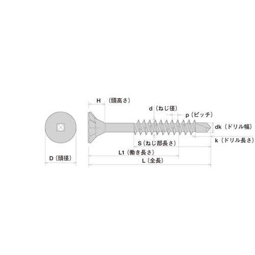 50mm厚のALC板を鉄骨下地に締結する際に使用するネジです。 |
