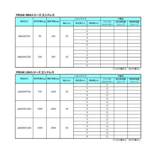 型式:NBA25NT50 | バックル形状:カム式 | 先端形状:エンドレス | 最大使用荷重:50kgf | 破断荷重:100kgf | 安全係数:…