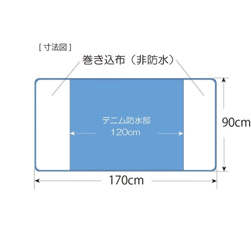 3層構造にすることで、耐久性をさらに強化。170cmの幅広サイズ(巻込布含む)でしっかり巻き込めて外れ難い。通常のデニム部分より幅広い120cmを実現。 |