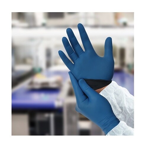 金属探知機対応の青色ニトリルゴム手袋です。青色で小さな断片でも認識が容易です。食品衛生法の規格基準に適合します。テストピース(FeΦ0.5mm)の探知感度とほぼ同一です。 |