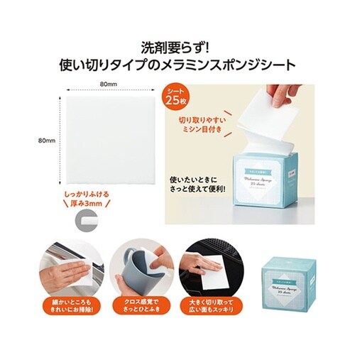 クロス感覚でサッと使えるメラミンスポンジ。シートタイプで柔らかく、細かいところもお掃除。大きく切り取って広い面もきれいに拭き取ります。 |
