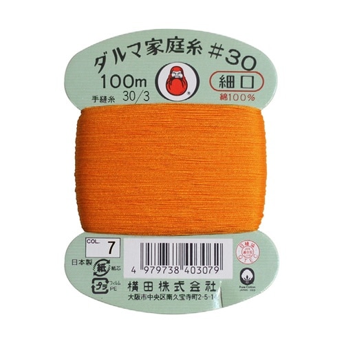 ダルマ 家庭糸 手縫い糸 30番手 細口 col.7 オレンジ 100m FDRS−7