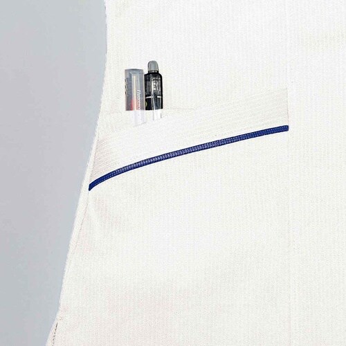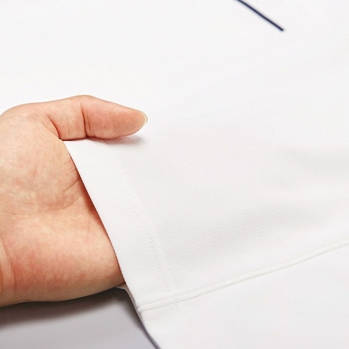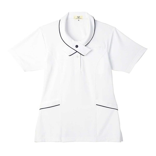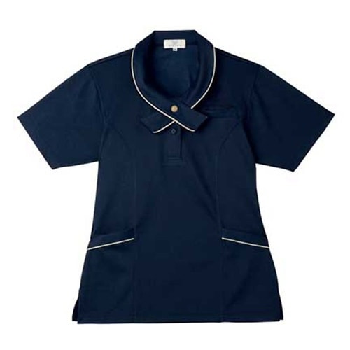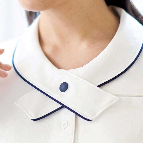 スナップボタン留めのクロス衿です。右脇には、便利な仕切りポケット付です。 |