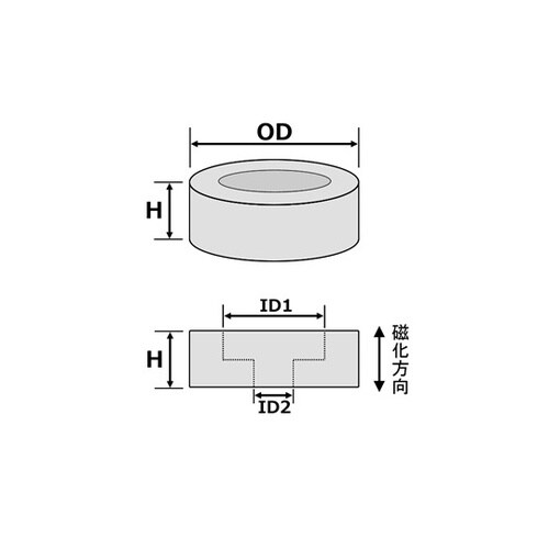 材質:ネオジム(材質グレードN45) | 形状:円柱型段穴付 | 直径OD:30mm | 高さH:20mm | 上穴径ID1:14mm | 下穴径ID…