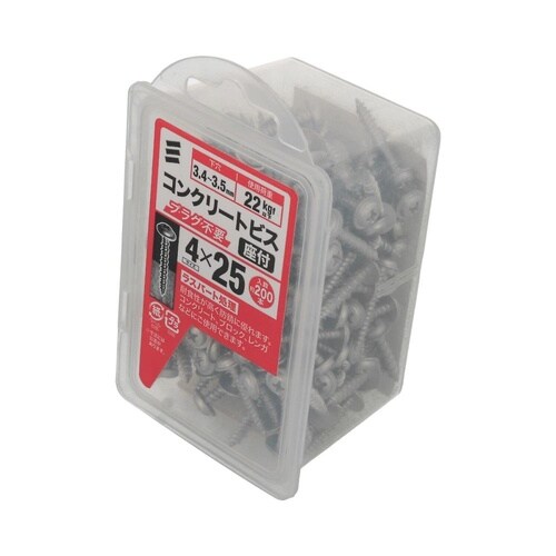 材質は鉄で表面処理はラスパート。プラグなしで締結できます。コンクリート、モルタル、ブロックなどにご使用できます。軽量物の取り付けに使用。 |