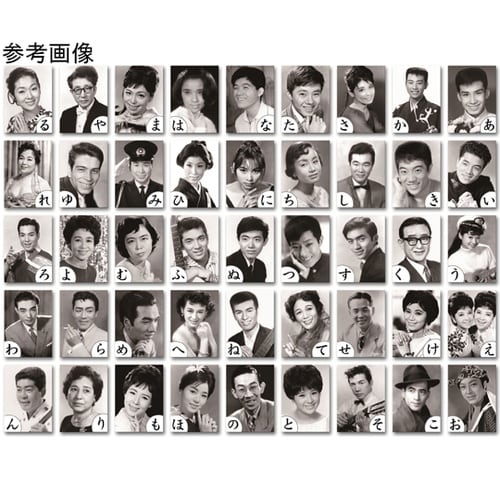 昭和にヒットした歌謡曲を題材にした読み札を総勢45人のスターの絵札で構成された昭和スターかるたです。 |