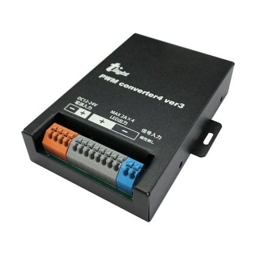 PWMライトコントローラー信号にあわせて灯具を調光する信号変換器です。調光範囲が広く、安定した調光カーブを描き、より自然でスムーズな調光を実現します。調光可能な灯具と併せての使用に。 |