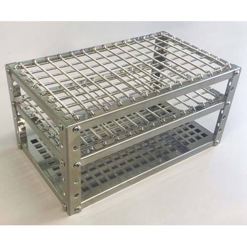 槽内のビーカーや試験管等を固定できるスプリング式棚板です。2段式のスプリングを使用し、槽内の水流から容器を確実に固定します。 |