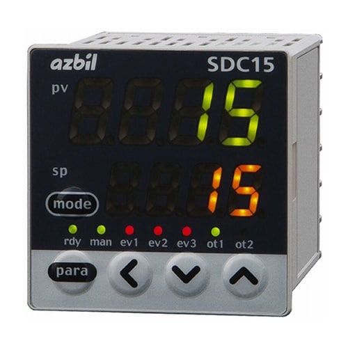デジタル指示調節計 SDC15 は、グループ内マルチレンジ入力で新アルゴリズム「Just−FiTTER」を採用したPID制御の□48サイズ小形デジタル調節計です。 |