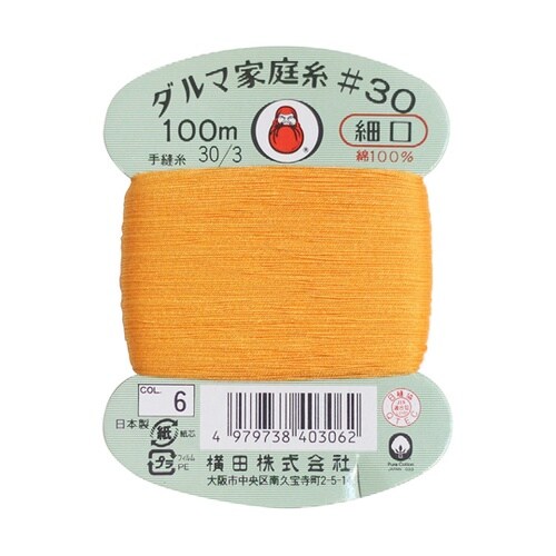 ダルマ 家庭糸 手縫い糸 30番手 細口 col.6 オレンジ 100m FDRS−6
