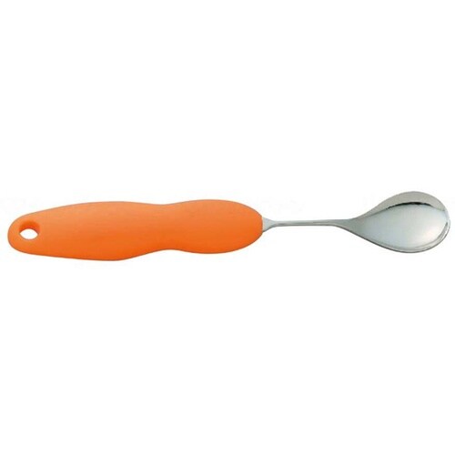 木の葉の形をしたスプーンのヘッドは先が細く口に入れやすいため、口の開きが小さな人に便利です。ネックは手で曲げられます。