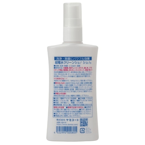 水を電気分解してつくられた 『アルカリイオン水100%の除菌洗浄水』アルカリイオン水100%だから、二度拭き不要。拭き残りは水と同様に蒸発し、環境を汚しません。 |