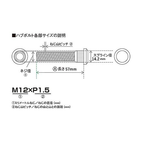 競技用ロングハブボルト トヨタ用 20mmロング M12XP1.5 スプライン径14.2mm 1セット(4本入) SBT−2