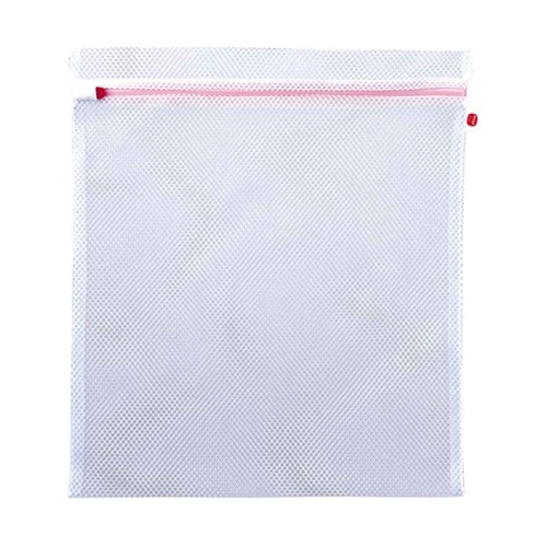 丈夫で水通しの良いレギュラーメッシュを使用した大物角型の洗濯ネットです。ワイシャツなら2枚、Tシャツなら3枚、スラックスなら1本洗えます。ファスナーが開けやすい大きな引き手です。 |