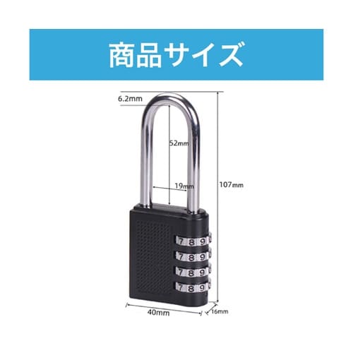 4桁ダイヤル式の南京錠です。お好みの番号を設定でき、鍵なしで開閉できる便利なタイプです。旅行やロッカー、自転車のロックなど幅広くお使いいただけます。 |