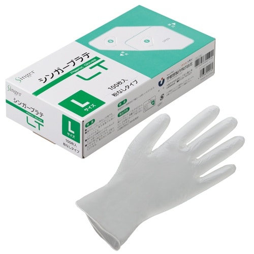 柔らかく手にフィットする、使い捨てビニール手袋です。装着を容易にする加工済みです。 |