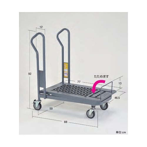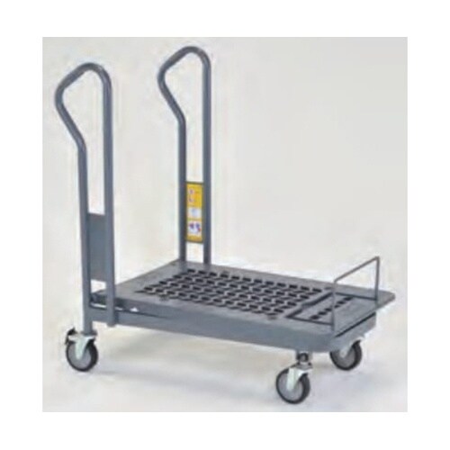 全面ストッパーのあるオープンタイプの手押し台車です。持ち手が縦方向なので長物の運搬にご利用いただけます。後輪2輪ストッパーキャスター付きです。滑り止めゴム付きです。ネスティング可能です。 |