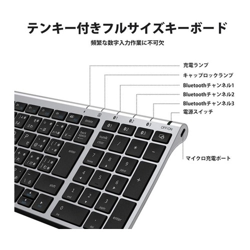 iClever Bluetoothキーボード※シルバーブラック(Type−C) IC−BK22