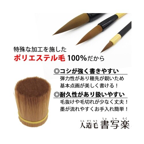 300年の歴史を継承する『あかしや』の奈良筆の中から厳選した入門者用シリーズこの筆は特殊ポリエステル毛で作られているため、動物の毛に比べ耐久性に優れ、毛抜けや毛切れが少なく丈夫です。 |