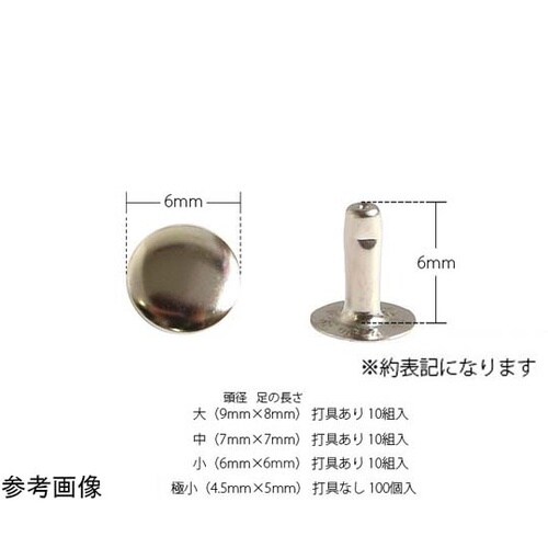 着剤以上の強度が必要となる部分の結合に使うカシメ鋲です。主にデザイン上存在する表面のリベットとして多く使用されています。 |