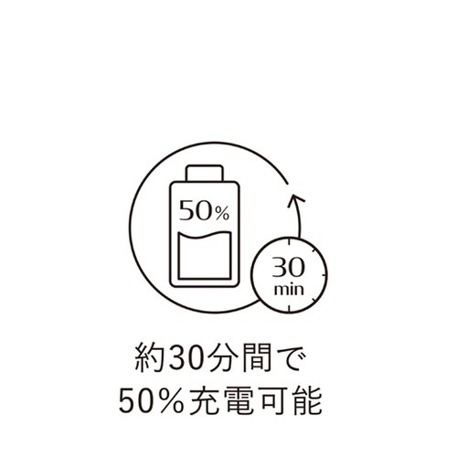 最大20W出力のPD対応ライトニングケーブルです。約30分で50%まで充電可能で、大容量デバイスも安心してスピード充電できます。 |