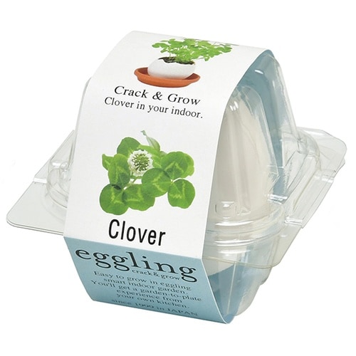 まるで本物のたまごのようなegglingシリーズ。たまごは陶器でできていて中にはタネと土がセットされています。上部をスプーンなどでコンコンと割って水をあげるとかわいい芽が出てきます。