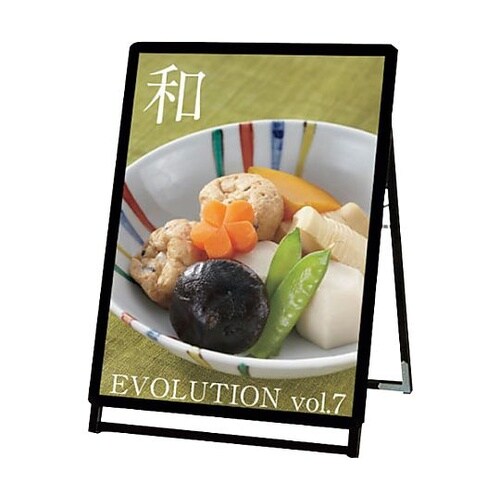 安心の日本製です。良いものを好むならコレです。高さ1m未満のポスター差替え式のA型看板です。施設、店舗内のポスター掲示、販促用に。 |