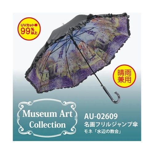 たっぷりのブラックフリルがゴージャスです。ブラックハンドルでさらに高級感アップしました。内側に広がる名画の世界がさらに引き立ちます。安心のUVカット率99%です。 |