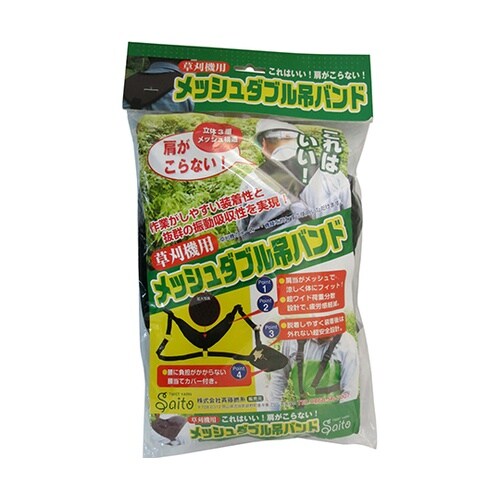 草刈機使用時の吊りバンド。作業がしやすい装着性と高い振動吸収性を実現!片当てがメッシュ加工で涼しく体にフィットします。幅広設計で荷重を分散し疲労感を軽減します。 |