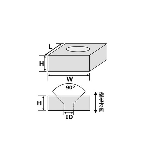 希土類金属の一種であるネオジムと鉄、ホウ素(ボロン)が主成分の焼結金属磁石です。強力な磁力の為、怪我や周辺物への磁力の影響等、取扱には十分注意する必要があります。 |