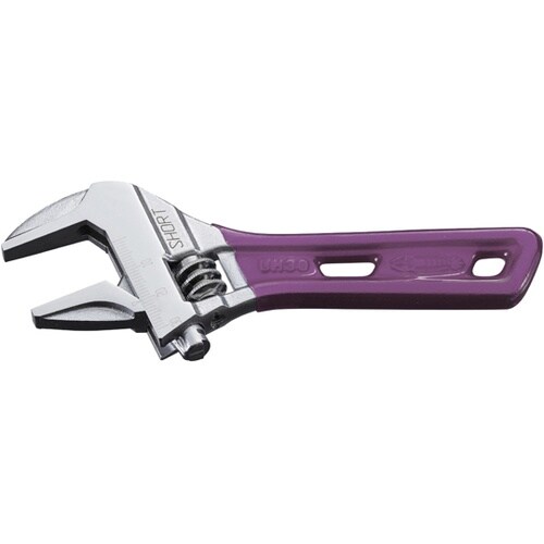 手のひらサイズで込み入った狭い空間での作業に最適。ショートタイプで目盛付き。口開きワイドで軽い・薄いスケルトンカラーグリップ。ボルト・ナットの締め付けからゆるめ作業に。 |