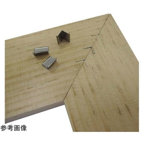 V型の釘を打ち込むことで写真フレームなどの45度板継ぎを簡単に行えます。金槌で簡単に打ち込める様な加工を施しました。 |