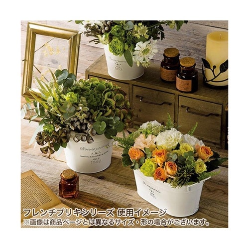 多肉の寄植えやドライフラワー プリザーブドフラワーに。GREEN HOUSE グリーンハウスフレンチブリキポット オーバルS穴あり/ライナー付3号ポットが2個入ります。 |