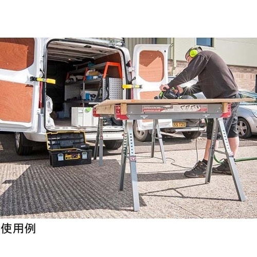 2×4材をセットし、その上に天板を置くことで安定した作業台に変身する、折りたたみのソーホースです。折畳んでコンパクトになるため、DIY以外でも作業台が必要な場面で大活躍。 |
