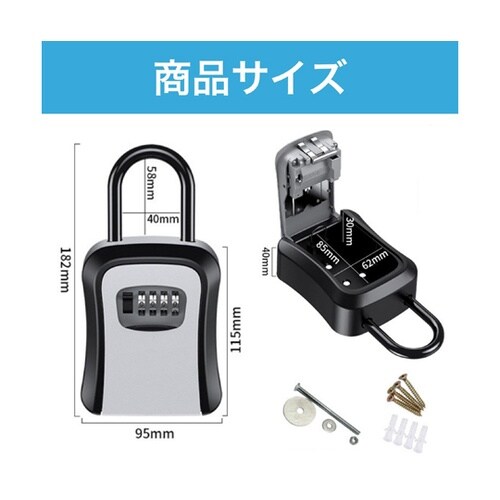 鍵や印鑑などを複数人でシェア・管理できる4桁ダイヤル式のキーボックスです。直接会って手渡しする手間を省き、安全・安心に貴重品を受け渡せます。お好きな4桁の番号を自由に設定可能。 |