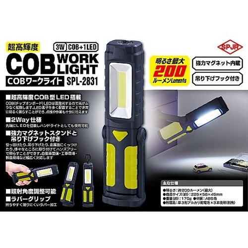 超高輝度COB型LED搭載2Way仕様…先端にLEDを搭載しハンドライトとしても使用可能。 |