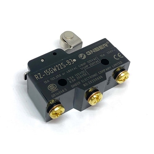 AC定格電流15Aの大型マイクロスイッチ。1回路2接点、金属ローラ仕様。 |