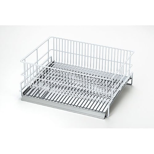メイドインツバメ認定品。斜めのプレート採用でトレーに水がたまらずに流れます。水を捨てる手間が減り大変便利です。かごの目が細かいのでお皿を立てかける事も可能です。 |