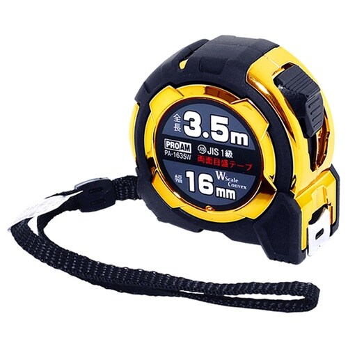 耐衝撃に優れるタフ仕様!長さ測定に。本体はラバープロテクトで耐衝撃に優れるタフな仕様。テープは両面メートル目盛り。テープ表面は通常の横目盛、テープ裏面は高さ測定等に便利な縦目盛。 |