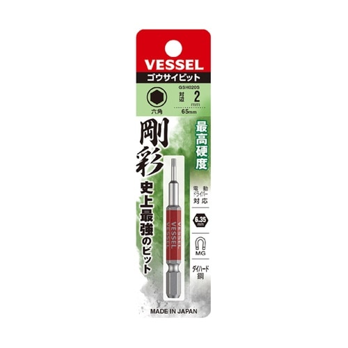 六角穴付きボルト、六角穴付き止めネジ用のビット。台紙サイズ:135×35×8mm。 |