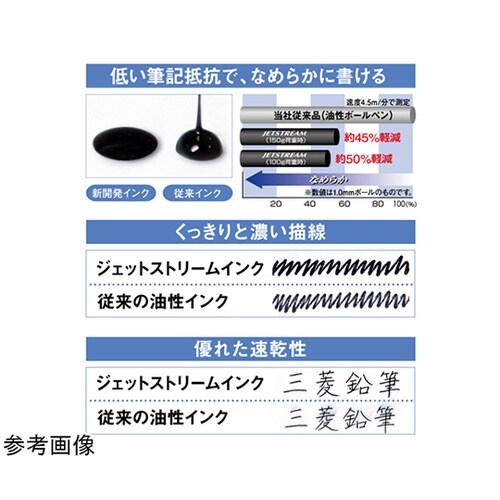 超・低摩擦ジェットストリームインク搭載。従来の油性ボールペンと比較して、摩擦係数が最大50%軽減されています。顔料と新しい色材を組み合わせることにより、くっきりと濃い描線を実現。 |
