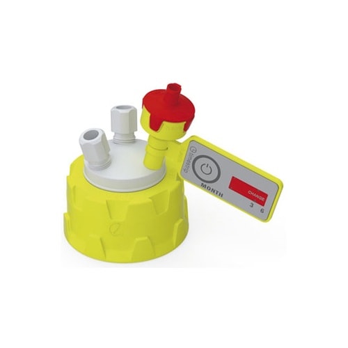 白色ボディトップに2個の1/8−27NPTメスネジポートと、1個の1/4−28UNFメスネジポート付きです。 |