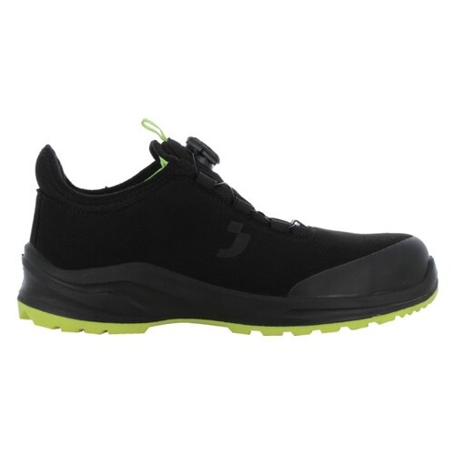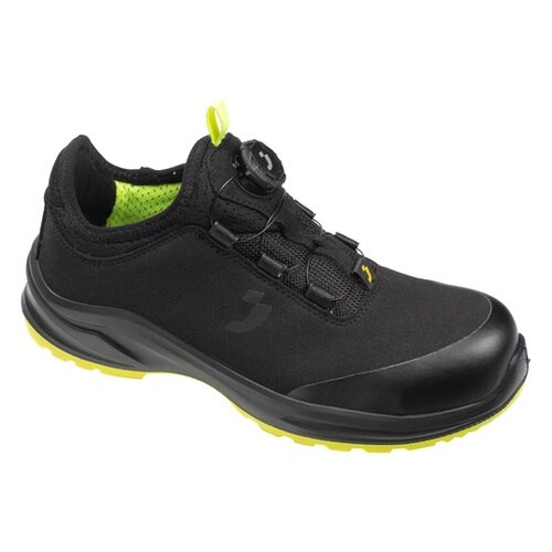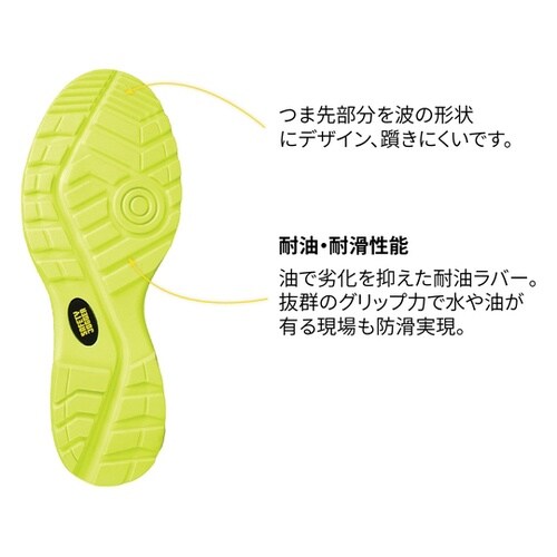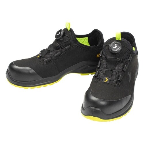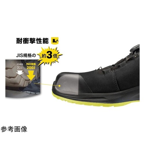 ダイヤル式仕様、脱ぎ履きし易いです。先芯の耐衝撃性能はJIS規格の約3倍の衝撃に耐えられる樹脂先芯を採用し、しっかりとつま先を守ります。 |